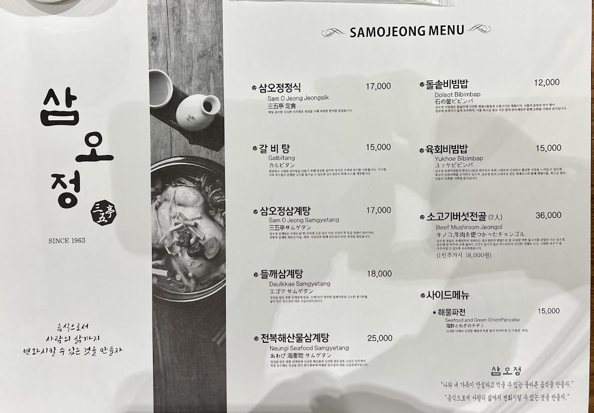 Samojeong Menu offers a delightful experience for anyone craving authentic Korean flavors in the heart of Busan. Nestled in the lively Seomyeon-ro area, this restaurant invites you to explore a variety of dishes that truly capture the essence of Korean cuisine. From savory stews to perfectly grilled meats, every dish is thoughtfully prepared with the freshest ingredients, ensuring that each bite is a burst of taste. Whether you’re a fan of spicy kimchi or tender bulgogi, the menu has something to satisfy every palate. The warm, welcoming atmosphere of Samojeong makes it the perfect spot to enjoy a meal with friends or family.